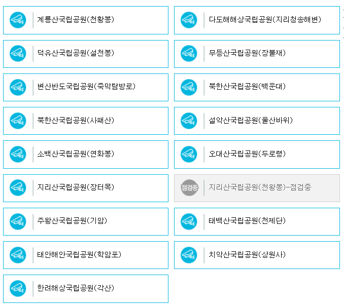실시간 영상 제공 국립공원 목록